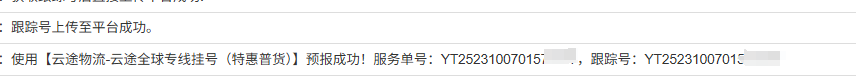 2.按最终跟踪号上传,需联系客服安装服务。正常的配货及预报/虚拟发货,这时候获取服务YT单号,跟踪号待生成。