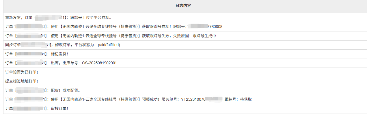 配上货,标记发货后,shopify平台状态变更fulfilled,订单进入回传,云途给出了跟踪号,服务会自动获取跟踪号上传至平台并回传到系统。